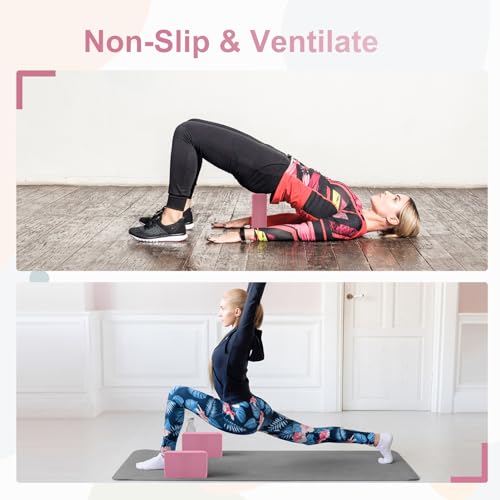 Yoga Blocks 2 Pack, Premuim EVA Foam Block, Durable Exersice Block for Yoga, Pilates, General Fitness, Stretching, Toning Workouts and Meditation, Non-slip