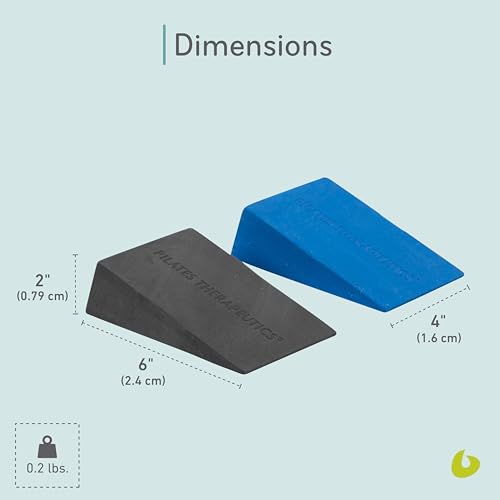 WORKOUT WEDGES DIMENSIONS: This set includes 1 black and 1 blue wedge, each measuring 6″ L x 4″ W x 2″ H. Each wedge features a stable non-slip surface for reliable support and comfort during use.
