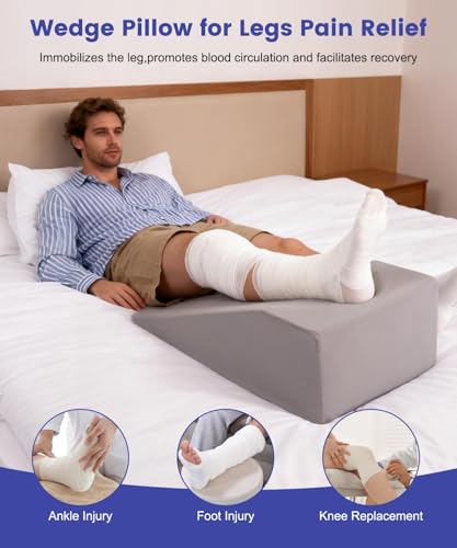 Litluxu Leg Elevation Pillows for After Surgery, 7.8Inch Height Foam Wedge Knee Surgery Recovery Equipment, Knee Replacement Recovery Aids for Hip Ankle Pain Relief, Single Leg Suppoort Wedge
