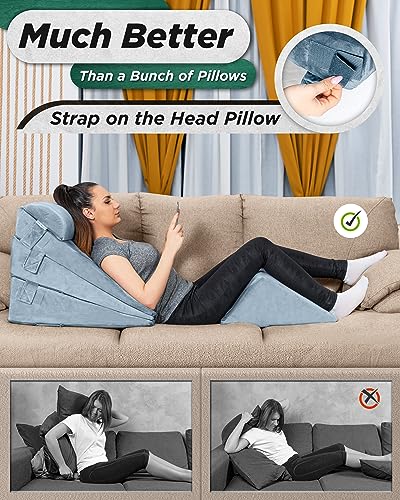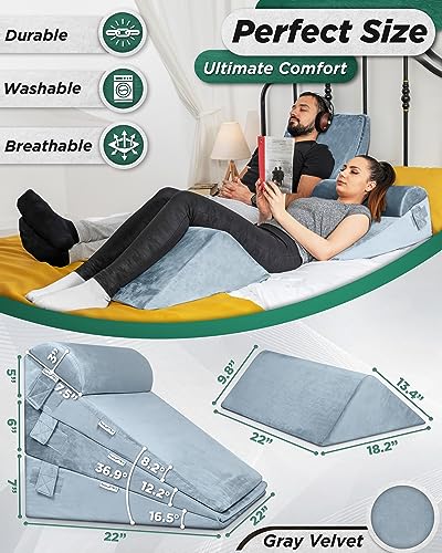Lunix 5pcs Orthopedic Bed Wedge Pillow Set for Sleeping – Adjustable Post Surgery Back, Leg & Knee Support, Acid Reflux & GERD Relief, Memory Foam Head Pillows, with Hot/Cold Pack, Gray