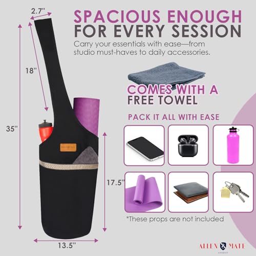 ALLEN & MATE 100% Cotton Unisex Yoga Mat Bag – Versatile Carrier with Mat Straps, Large Storage Pockets Fits Yoga & Pilates Mats
