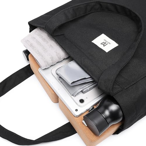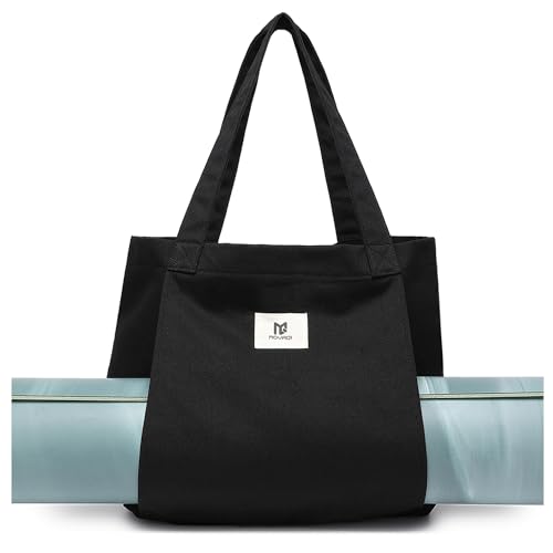 Moyaqi Canvas Tote Bag with Yoga Mat Carrier Pocket Carryall Shoulder Bag for Office, Workout, Pilates, Travel, Beach and Gym