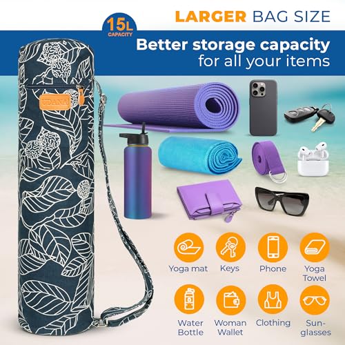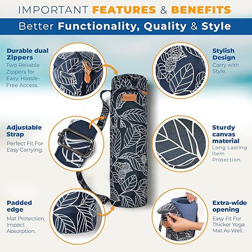 UDANA Yoga Mat Bag & Carrier – Fits Extra Thick Mats & Pilates Equipment – Heavy Duty Canvas Holder with 3 Pockets – Adjustable Shoulder Strap – Full Zip