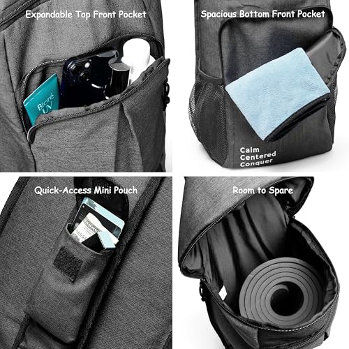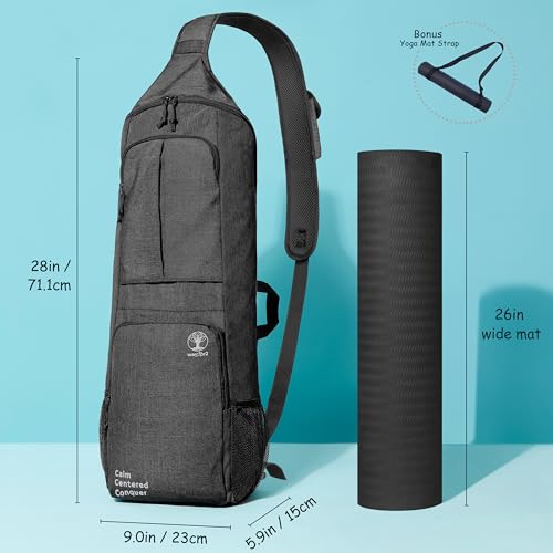 Specification: Yoga Mat Bag Carrier – Large Pockets & Water Bottle Holders. Yoga Backpack Fits 0.5″ Thick x 26″ Wide Mats. Hands-Free, Left-Right Switchable, Yoga, Gym, Cycling