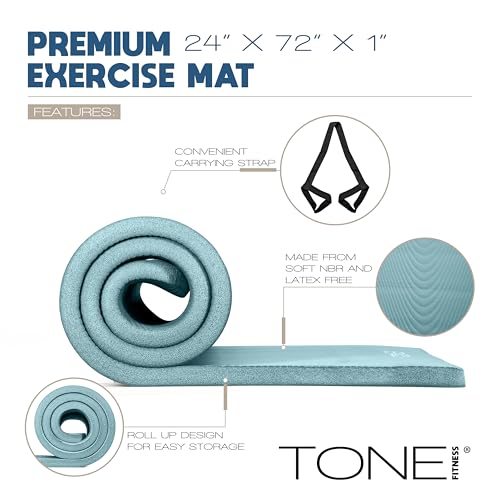 Specification: Tone Fitness 1-Inch Thick Yoga Mat | High-Density, Non-slip Exercise Mat with Carrying Strap for Yoga, Pilates, & Home Gym Workouts | Multiple Options