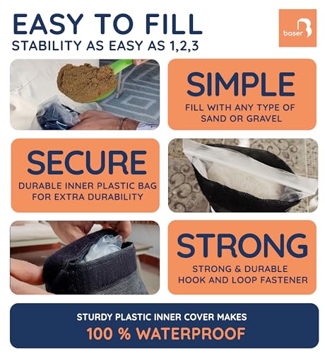 DEPENDABLE WINDPROOF STABILITY: Provides reliable stability for outdoor items such as patio umbrella bases, garden furniture, drying racks, trampolines, tents, and doors. These fillable weight bags are designed to keep your outdoor structures secure and stationary in windy conditions.