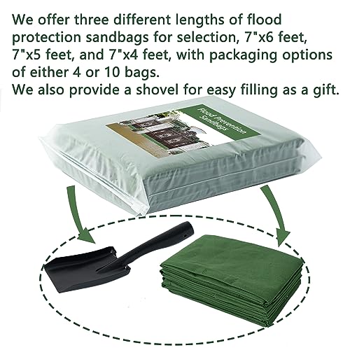 【Specification】We offer three different lengths of flood protection sandbags for selection, 7″x6 feet, 7″x5 feet, and 7″x4 feet, with packaging options of either 4 or 10 bags.