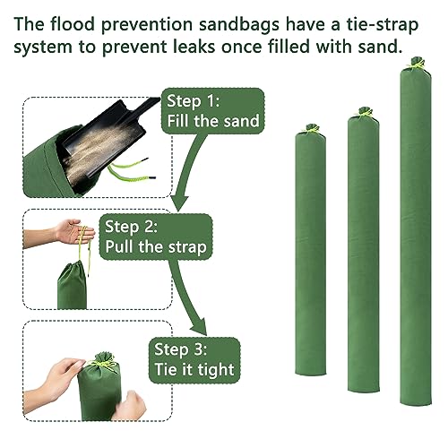 【Operation】The flood prevention sandbags are designed with a tie-strap system that once filled with sand, simply tightens the strap and secures the bag to prevent any sand leaks. To make your life easier, we also provide a shovel for filling the sandbags as a gift.