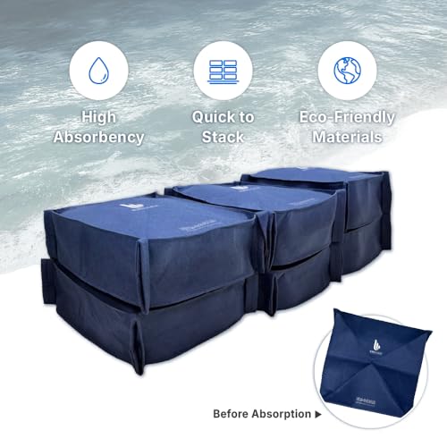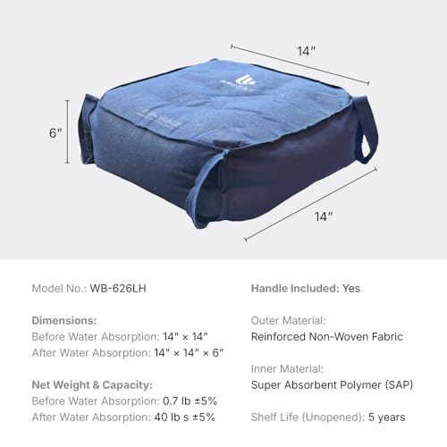 WEIBAO Square Tech Sandbag with Handles – 5 Pack (14″ x 14″), Dark Blue | WB-626LH-A | Water-Activated Flood Barriers, Sandless Sandbags, Absorbent Water Blocker