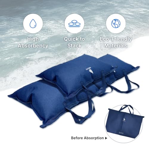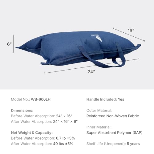 WEIBAO Standard Tech Sandbag with Handles – 5 Pack (24″ x 16″), Dark Blue | WB-600LH-A | Water-Activated Flood Barriers, Sandless Sandbags, Absorbent Water Blocker