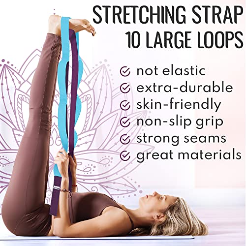 TECEUM Stretching Strap for Yoga & Physical Therapy – 10 Loops – Non-Elastic Leg Stretch Straps for Stretching, Exercising, Pilates, Post-Injury Rehabilitation for All Levels – Men & Women